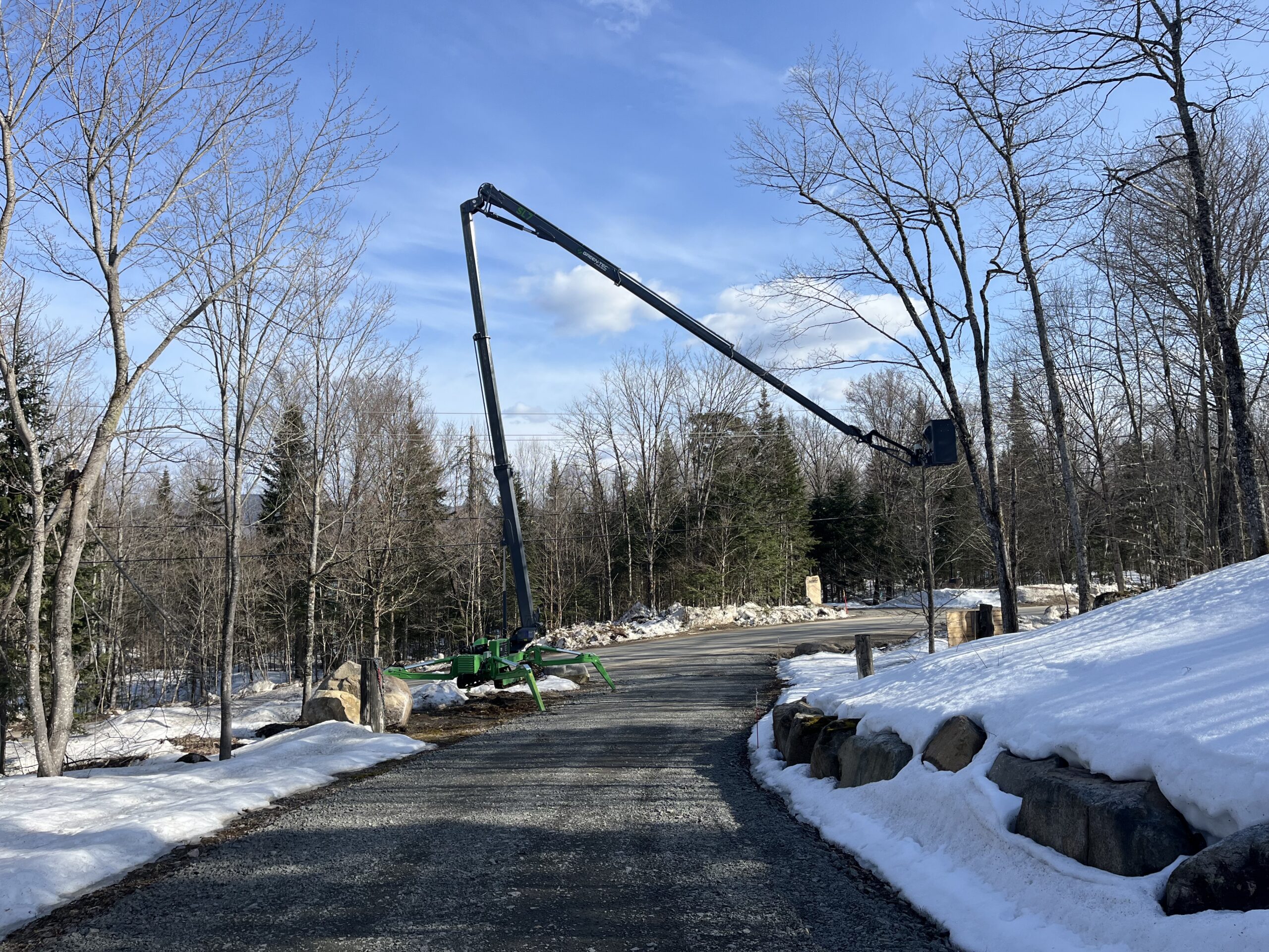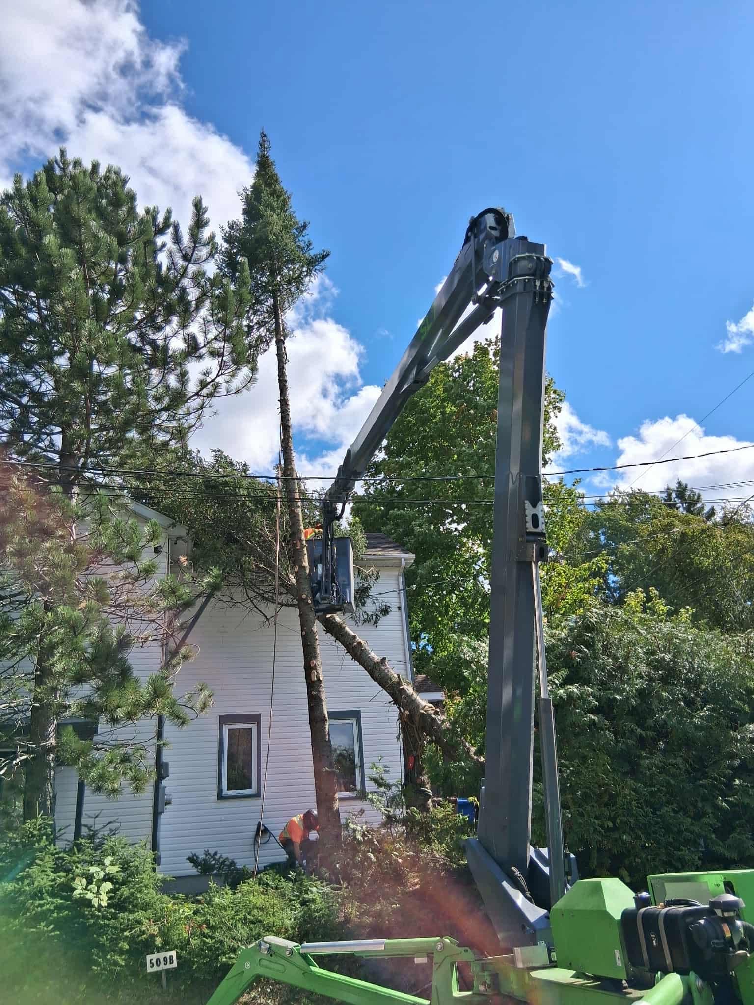 Lorsqu’un arbre tombe ou menace la sécurité des personnes et des biens, une intervention rapide est essentielle. Nous offrons un service d’urgence en tout temps afin de sécuriser les lieux et retirer les arbres dangereux. Grâce à notre nacelle araignée sur chenilles, nous pouvons intervenir efficacement même dans des zones difficiles d’accès, là où les méthodes traditionnelles sont limitées.